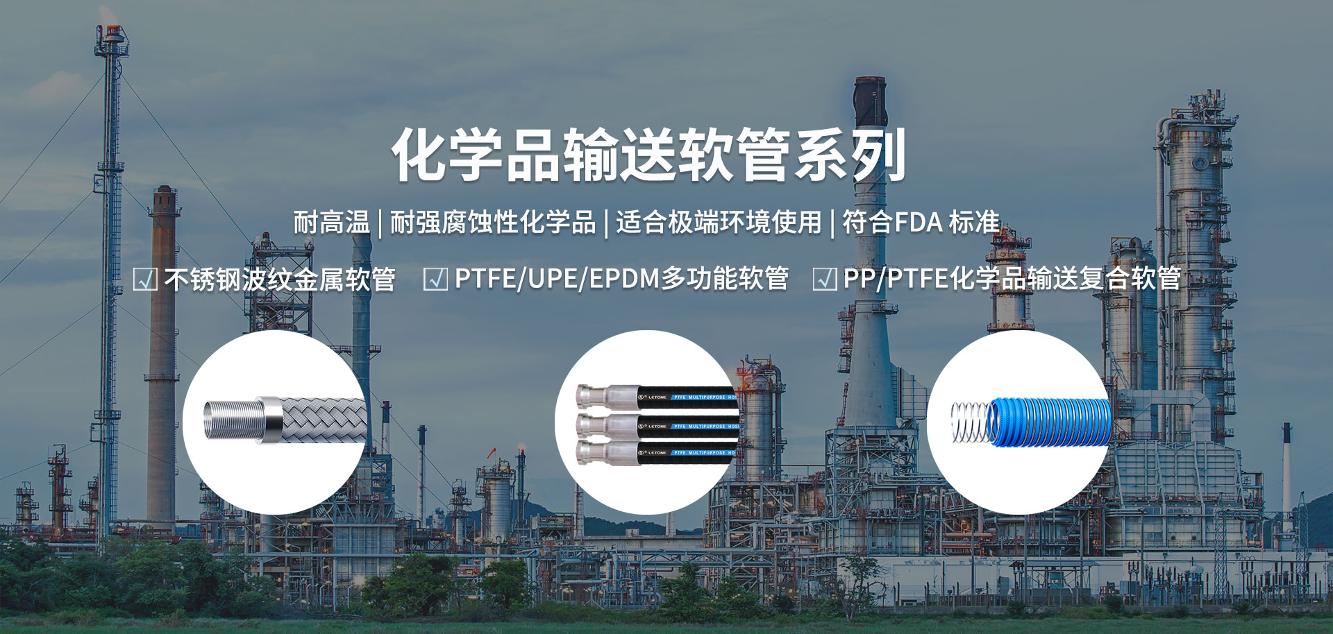 化學(xué)品輸送軟管適用于輸送多種腐蝕性物質(zhì)如酸性及堿性溶劑等。其超強(qiáng)耐腐蝕的特性使其成為石油化工、危險液體運(yùn)輸?shù)刃袠I(yè)的品質(zhì)之選。